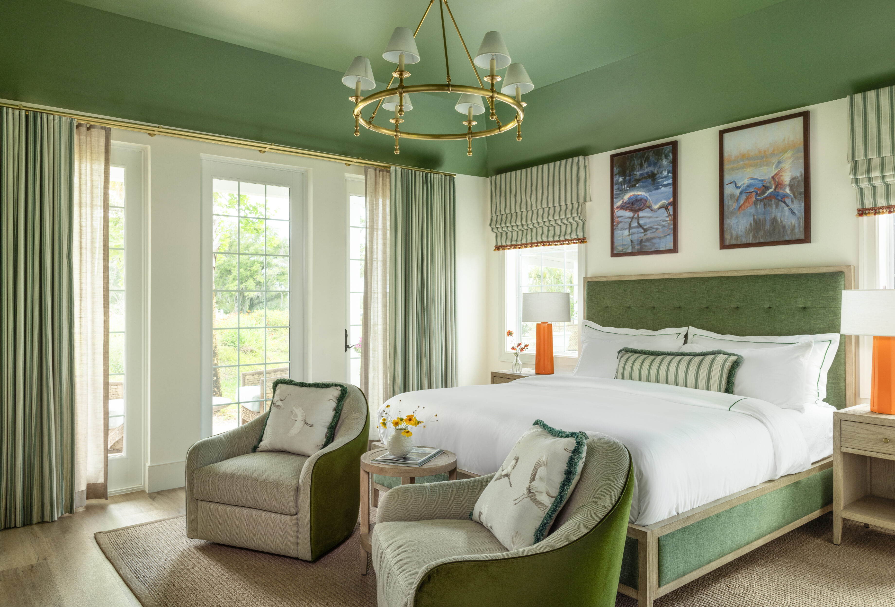 With large windows, raised scissor-truss ceilings, and an open-concept layout, the design creates a bright, airy atmosphere. Thoughtfully curated furnishings and textiles blend comfort and sophistication, complemented by a calming palette of neutrals and greens inspired by the natural surroundings. Whether you’re relaxing between rounds, dining al fresco, gathering with friends, or simply unwinding for the night, the Cottages at Cabot Citrus Farms are your perfect haven.